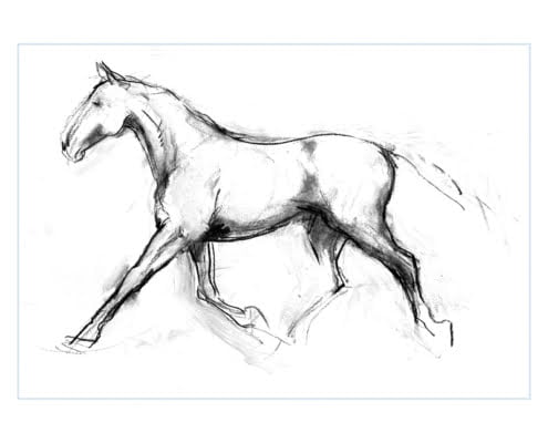 In the workshop students will begin by free mark-making with charcoal, and then continue by using imagination or favourite personal imagery to develop expressive drawings. Many people in Diana’s classes have experienced a revelation as they realise perhaps for the first time ever that they really are able to draw and in the process to express their love of horses.