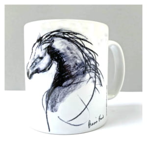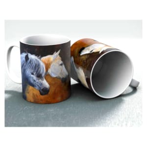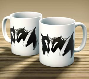 A collection of ceramic mugs from an original drawings and paintings by Diana Hand