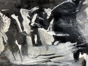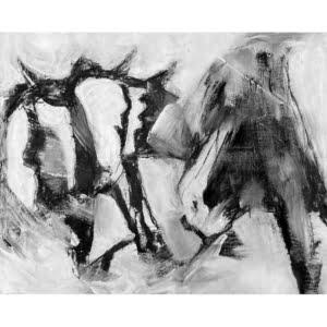 This does work because I have grasped the stance of the two background horses and solved the problem of the overall composition better. Most importantly, I am satisfied that I have understood the subject sufficiently to work from memory if I wish to. Also, with time, I might simply work on one of the abstract pieces in itself, having left the original associations behind. Also I might return to the figurative work after putting it aside for a while.