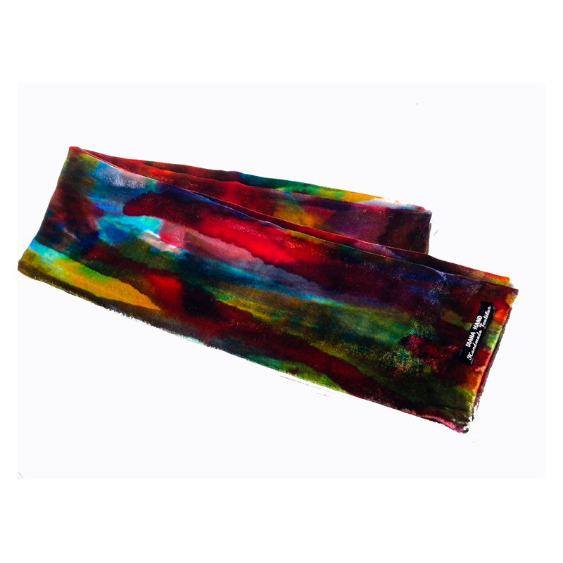 Hand-painted extra long length double weight velvet scarf “Magma”