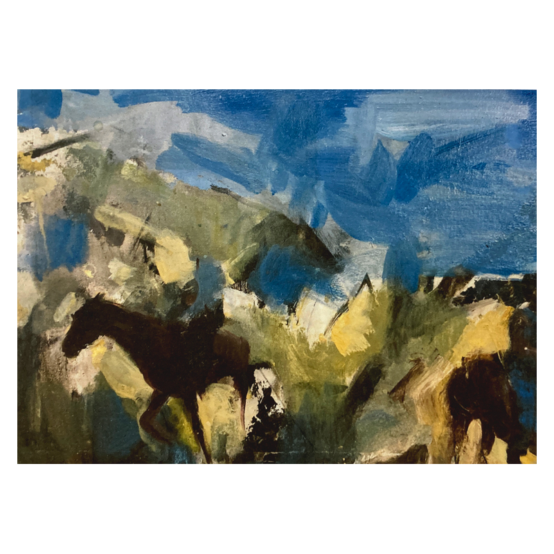 In 2020, just before lockdown happened, I was in Eastern Cape, South Africa. It was a riding holiday along the beaches of the Indian Ocean. This is a transcription of one of the moments. It turned into a rough abstract and I was entirely happy with that. A breakthrough painting in its way.