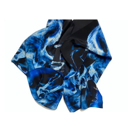 Pure silk long crepe de chine scarf printed with “Blue Horses” design by Diana Hand.
